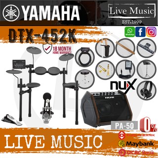 Yamaha Digital Drum Dtx452k Electronic Drum Set With Headphone Stool And Drumsticks Music Bliss Malaysia